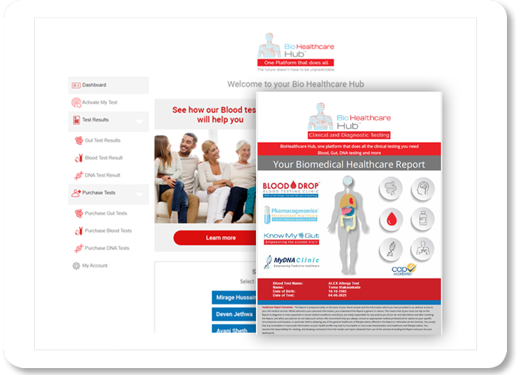 BioHealthcare Hub™ is a single, secure digital platform that brings together your blood, gut, DNA, and specialist health test results in one place.